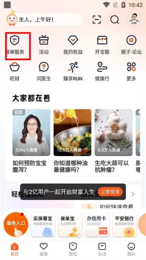 1、点击“保单服务”,在平安金管家APP首页点击进入“保单服务”。