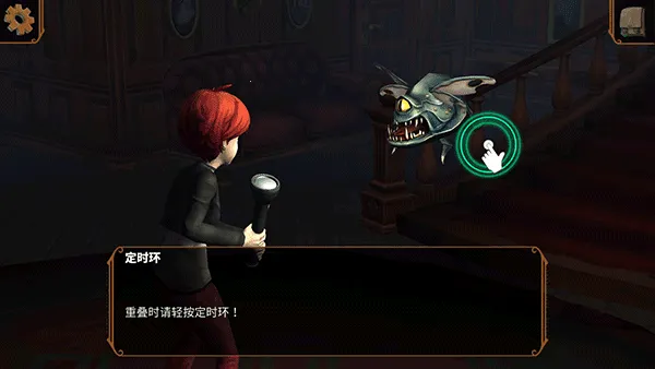 4、当我们的对话结束之后,便会唤醒沉睡的鬼怪,如下图所示绿色圈是攻击的方式,我们在两个绿色圈重合的时候点击便可以更加精准的命中怪物,当然怪物也会攻击主角。