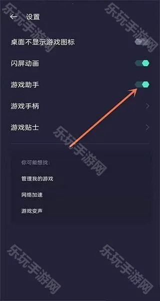 3、设置页面将游戏助手开启。