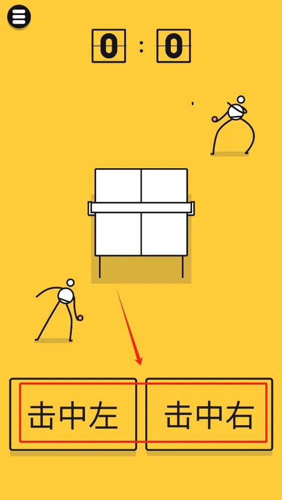 2、游戏中,根据乒乓球的位置,点击“击中左”或“击中右”按钮,控制球拍击球。