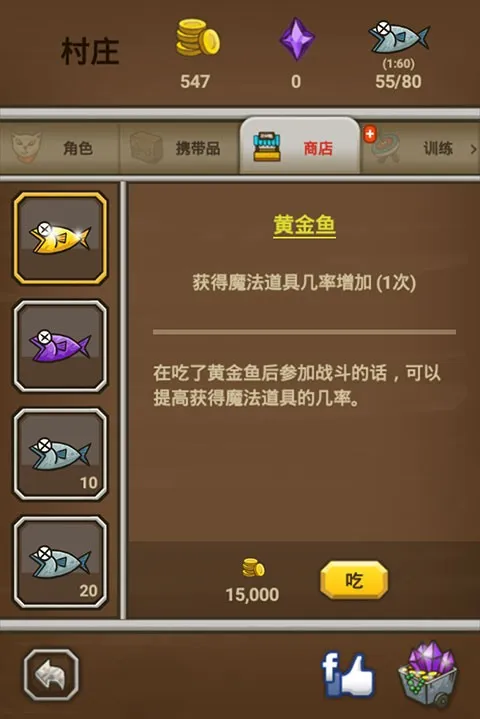 4、消耗15000金币来购买一次性的黄金鱼,以提升下一次获取高级装备的概率。