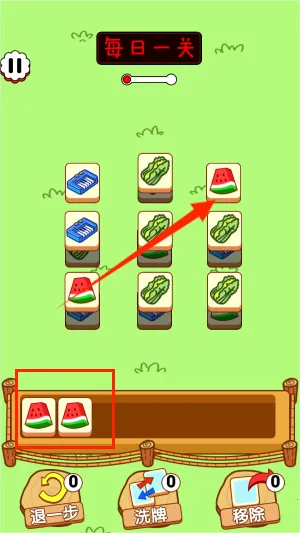 4、将画面上方出现的西瓜等相同元素,累计三个即可完成消除操作。