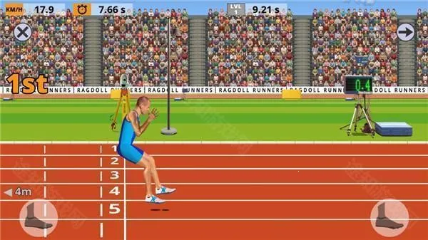2、根据游戏中的障碍物或者运动时机进行有节奏的按键,并且在物理引擎的条件下控制好方向。游戏中主要操控运动员的两条腿,每条腿都会有一个按钮。